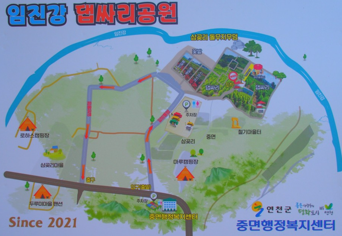 - 내비게이션에 ‘경기도 연천군 중면 삼곶리 422’ 또는 ‘임진강 댑싸리공원’ 입력하면 됩니다.